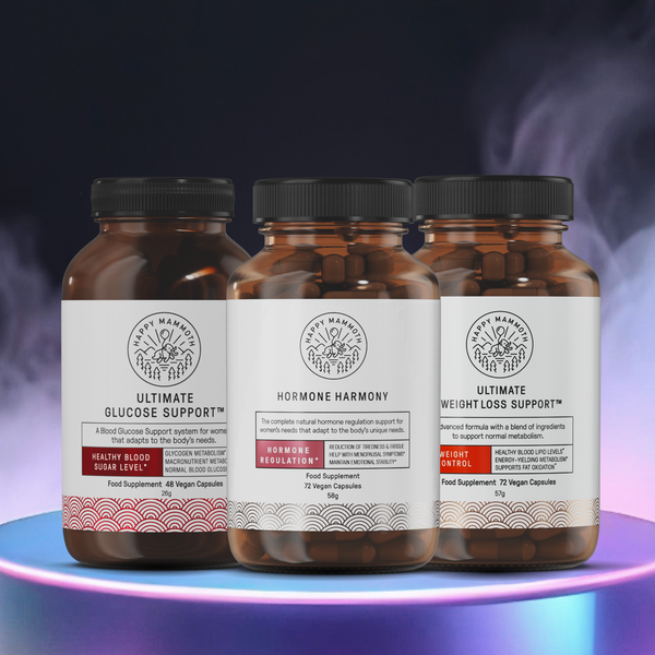 Un ensemble soigneusement sélectionné de 3 formules Happy Mammoth qui agissent en synergie pour soutenir un équilibre hormonal harmonieux et accompagner la gestion du poids, en ciblant plusieurs causes sous-jacentes à la fois.